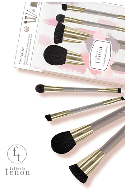 フェリセラテノンの特徴は、今の流行メイクに合う、しっかりと発色させるだけではなく、形状にこだわることで綺麗にぼかすことができるなど、テクニックなしで思いのままメイクができるということです。ファンデーションブラシ、パウダー・チークブラシ、アイシャドウブラシ、アイブロウブラシ、ポーチの5点セットを発売致します。