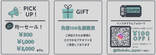 国内外でリユース事業を展開するMF Global 株式会社(本社:東京都港区南麻布、代表取締役:萬田 凛桜)は、訳アリ商品などのセレクト商品を販売するオンラインショップ『iiKaKaKu』初の実店舗『iiKaKaKu AZABU』を2024年7月29日に港区東麻布1丁目にオープン。この度、8月31日まで「グランドオープニングセール」を実施しております。