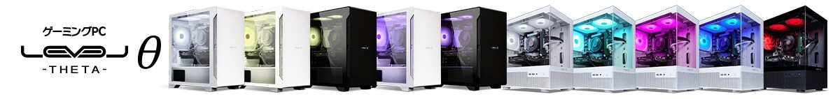 LEVELθ(レベル シータ)は、これからPCでゲームを始めたい初心者からPCを買い替え予定の経験者まで、幅広い人にお送りする高コストパフォーマンスゲーミングPCです。コスパを追求しながらも搭載パーツを厳選することで、ゲームを快適にプレイ可能なスペックを実現。コスパとスペック、デザインを兼ね備えたLEVELθでPCゲームをお楽しみください。