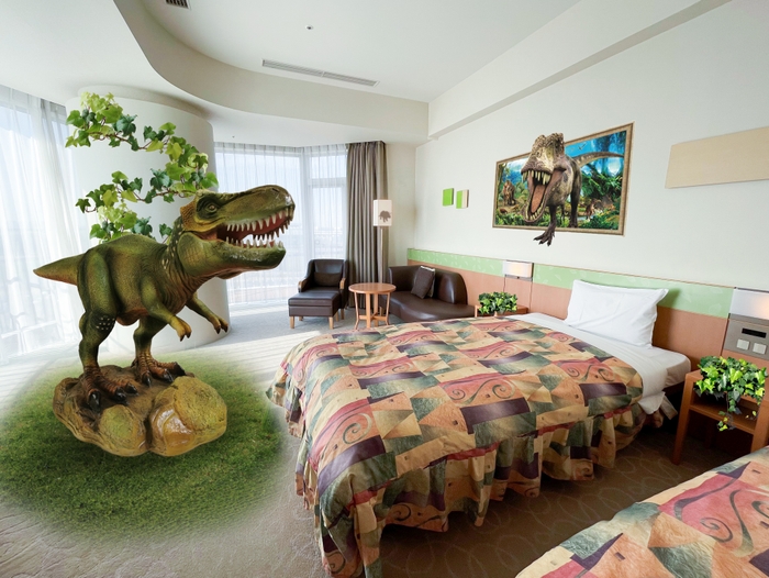 期間中はロビーで大きな恐竜がお出迎えする他、ホテルではフィギュアが付いた楽しいコンセプトルームが登場します。