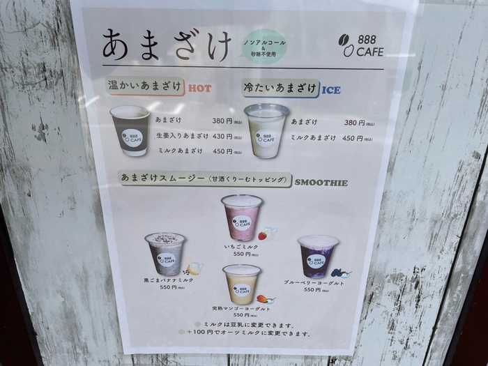 888CAFEのメニューの中で一番目を引く商品はやはりあまざけスムージー!