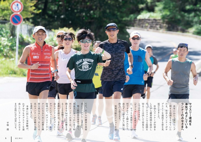 陸上競技部出身者でなく、社会人になってから走り始めたランナーの多くは、月間200㎞以上の距離を走ることを余儀なくされます。本書の企画では、9名の社会人ランナーがサブスリーチャレンジャーとなり、私の指導の下、サブスリーランナーになるために必要な練習を重ねました。そして4名のランナーが念願の目標を達成しました。