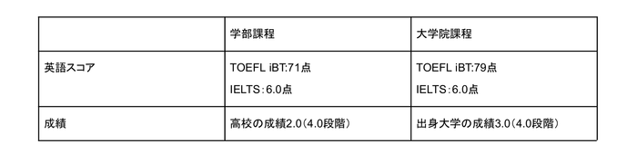 一般的に留学できる英語力は、TOEFLiBTで60点以上、IELTSで5.5以上といわれています。これと比較しても、SUU Onlineはハイレベルな英語力、成績を求めています。