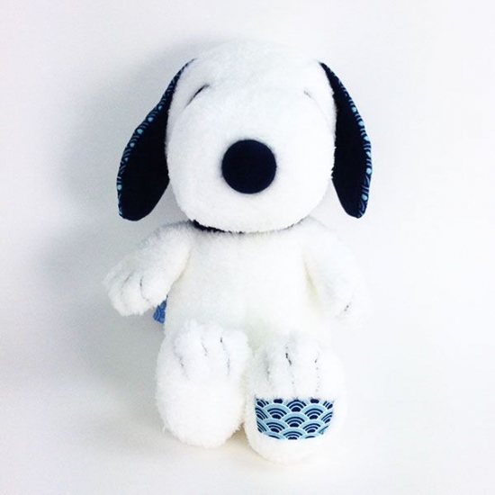 青海波模様のスヌーピーです。耳の部分と足の裏に、さりげなく模様が入っていますね。サイズは21×16×17cm。手触りも気持ちいいんですよ。