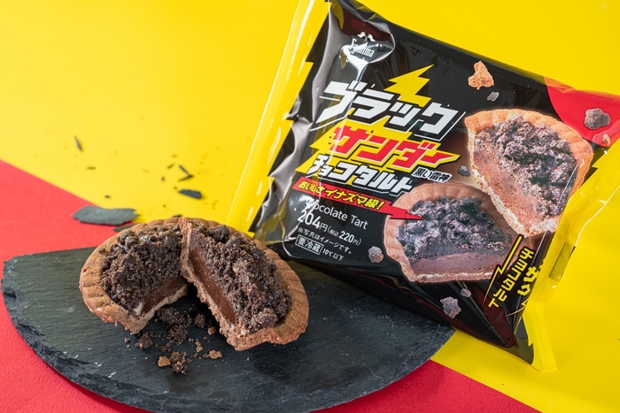 「ブラックサンダーチョコクッキーシュー」184円(税込198円)にはココアクッキー生地を使用、「ブラックサンダーチョコタルト」204円(税込220円)にはココアクランブルをトッピングし、ブラックサンダーのザクザク感を再現しています。また、「ブラックサンダーフィナンシェ」165円(税込178円)は、ブラックサンダーのザクザク感をそのまま味わっていただける食感にこだわり、チョコでコーティングする前のブラックサンダーをトッピングし焼き上げました。