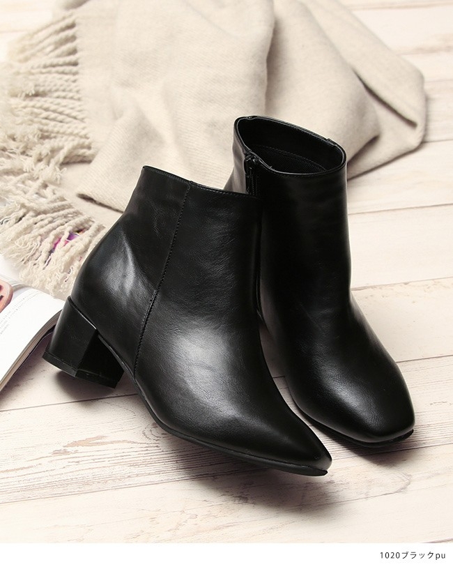 コーデに合わせやすいベーシックデザインのショートブーツ。 安定感抜群のチャンキーヒールで歩きやすさもキレイ見せも叶えてくれる。
