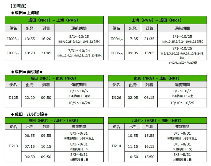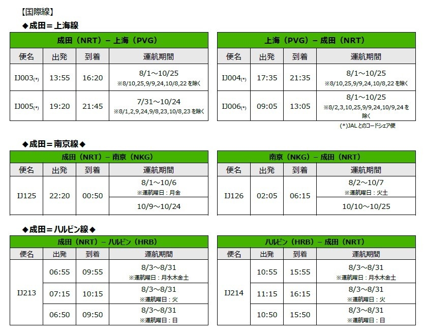 JALグループのLCCであるスプリング・ジャパン株式会社(以下:スプリング・ジャパン)は、成田=上海線、南京線、ハルビン線、大連線、天津線、および新千歳線の増便を以下のとおり決定し、本日17時より販売を開始します。