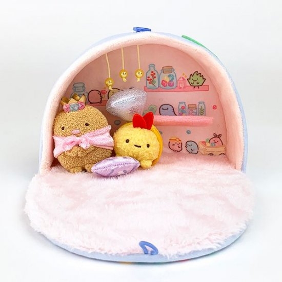 開けると、中からはえびふらいのしっぽ&とんかつのぬいぐるみが♪キラキラなダイヤも2個ついています。このままお部屋として、ごっこ遊びができちゃいますね。