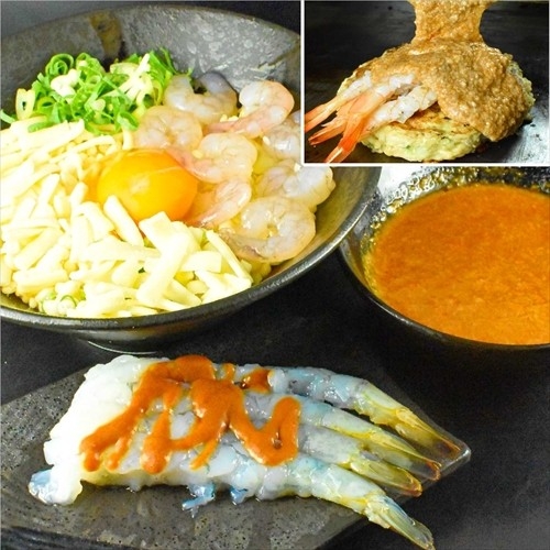大海老・むき海老・チーズを使ったお好み焼きを、海老とろろが包み込む贅沢仕様。海老好きにはたまらない、まさに「トレビアン」な味わい。