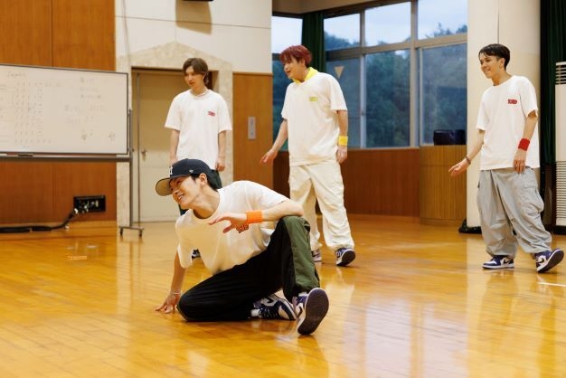 練習の合間には、Travis Japanが高校生たちと一緒に「おやつタイム」。将来ダンス留学を考えている生徒に、アメリカで武者修行を経験したTravis Japanがエールを送る場面も。英語は話せずとも、持ち前の“コミュ力”を発揮してきた松田元太は「もちろん会話は出来たほうが良いけど、ダンスだけでも通じ合えるものがある。身振り手振りでも伝わるし、若干怖かったけど、でも…!」と、現地での思い出を高校生に明かす。