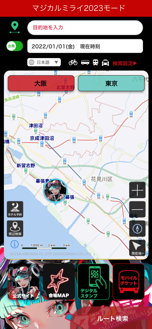また、地図やモバイルチケットをまとめてご案内する「マジカルミライ2023モード」、会場に到着すると特別なイラストが保存できる「来場記念デジタルスタンプ」など「乗換案内アプリ」の機能を活用した特別な企画機能も、イベントに合わせ順次開始していきます。