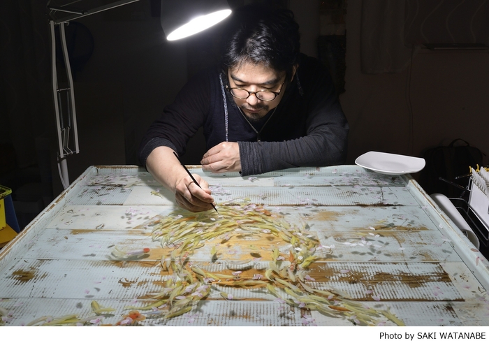1973年愛知県生まれ、1995年愛知県立芸術大学美術学部デザイン・工芸専攻学科卒業。制作に行き詰まりアーティストを辞めようとした時、部屋で7年間粗末に飼っていた一匹の金魚に初めて魅了され、金魚を描きはじめる。独自の超絶技巧によって国内外で高い評価を受けている。