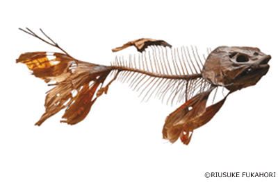 深堀隆介は1973年、愛知県名古屋市に生まれた。愛知県立芸術大学美術学部在学中に制作した課題作品《自己像》では、自然木を用いて人体骨格を表現し、首のない骸骨の姿を通して、自己の内面や人間がもつ「死への願望」について向き合った。卒業制作では制作に行き詰まり一旦は全てを破棄。かつて制作した《自己像》の木の枝が魚の骨に見えたことから、幼少期の魚への畏怖を思い出し、「自分の原点には魚があった」と気付き、《Fishbone》を作り上げた。深堀が金魚を一生のテーマと決めた転機は、作家として独立後に自信を失い美術をやめようと考えたときに訪れたという。飼っていた金魚からインスピレーションを得て再起した深堀はこの経験を「金魚救い」と呼び深く胸に刻んでいる。この章では、「金魚救い」以前の粗削りな初期作品を紹介する。