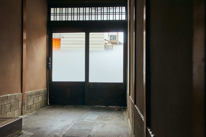 玄関先には町屋の風情ある出格子がお出迎え。軒をくぐると凛とした丁場を備えた通り土間。外から部屋を通って中庭へと抜ける、気持ちの良い風が流れていきます。