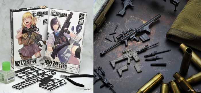 株式会社トミーテックより2014年3月に発売した、1/12スケールのリアルな銃火器を中心としたプラモデル。1/12という手のひらサイズながら、精密なディテールはもちろん、ボルトアクションなどのギミックを搭載した製品も発売。プラモデルとして組み立て、銃のミニチュアコレクションとして楽しめるのはもちろん、同等サイズの可動フィギュアやドール、ロボット系のプラモデルに持たせて遊ぶことも可能。