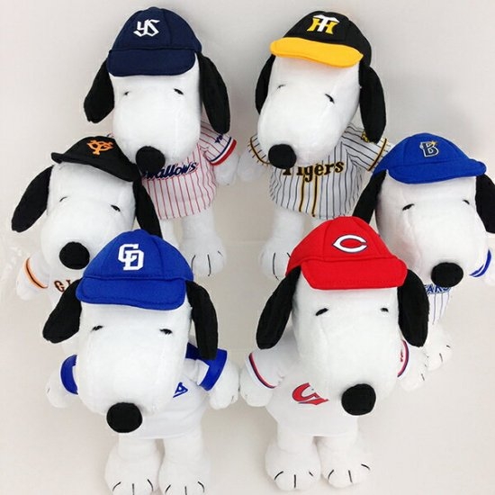 プロ野球コラボの、スヌーピーぬいぐるみです。球団のユニフォーム姿のスヌーピーが、とっても可愛いですよね。