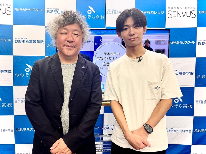 在学時の活動や、屋久島のスクーリングでの経験を茂木校長と熱く語ります。