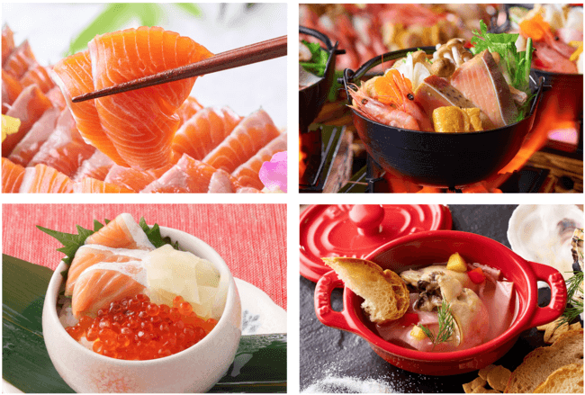 サーモンや牡蠣、帆立を和洋のメニューで楽しめる海鮮づくしのバイキングでおもてなしいたします。