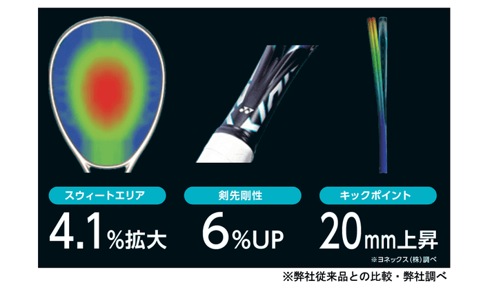 フレーム上部を広げ、スウィートエリアを4.1%拡大。剣先部はねじれを抑える形状にすることで剛性を高め、キックポイントを上方へ約20mm移動。打球時のレスポンスを向上させ、素早いキックバックを生むことで、弾き性能を高めます。