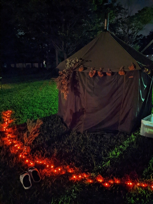本イベントは、「花と焚火とお月見サウナ」と題し、自然の心地よさを感じながら、お月見と近年ブームになっているテントサウナを同時に楽しんでいただこうと企画しました。