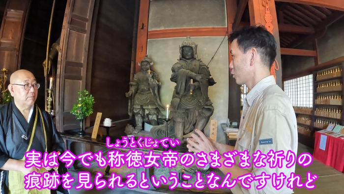 西大寺の高僧、佐伯俊源さんをスペシャルナビゲーターにお迎えしました。お二人は東京大学古代史ゼミの先輩と後輩。絶妙なコンビネーションで称徳女帝の祈りがつまった西大寺境内を案内してくれます。