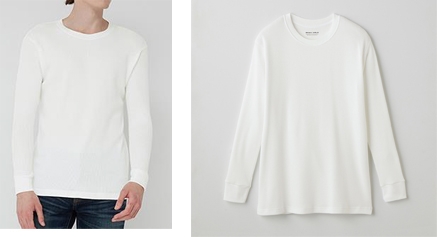 秋冬コーディネートのアクセントにおすすめのストレッチワッフルのロングスリーブTシャツ