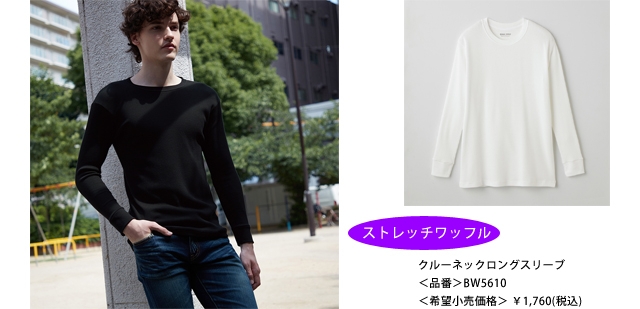 クルーネックロングスリーブ【ストレッチワッフル】