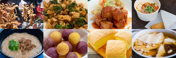 「塩酥鶏(イエンスージー)」、「炸臭豆腐(ザーチョウドウフ)」、「鹹豆漿(シェンドウジャン)」、「麺線(ミェンシェン)」、「地瓜球(ディーグァーチョウ)」、「台湾カステラ」、「豆花(トウファ)」、「芋圓(ユーユェン)」等、多数ご用意しております。