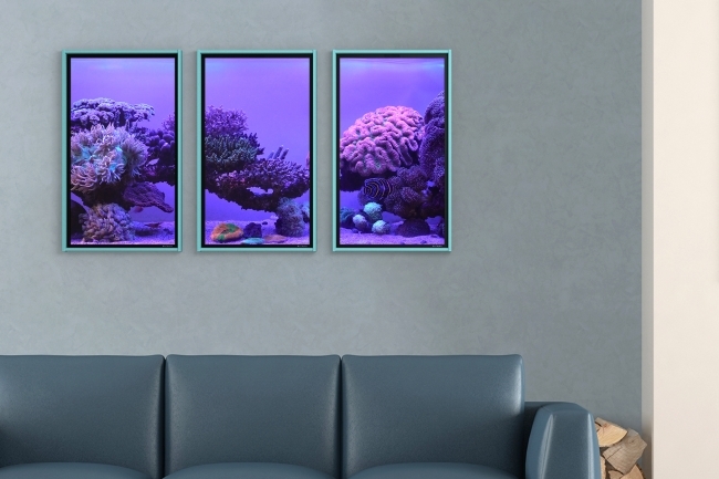 3台のAtmoph Window 2をつなげて見るアクアリウムの世界は、見る人に癒しとゆったりとした時間を与えてくれます。アクアリウムでは、岩や苔、そして水草ひとつひとつのレイアウトを丹念に創り上げることで、独特の世界観を築き上げていきます。本日配信を開始するパノラマ動画は、日本庭園を想起させるような、侘び寂びのある雰囲気が美しい「岩組み水槽 山藍摺(やまあいずり) 」と「水草水槽 深碧(しんぺき)」、そして薄紅色のライトに照らされた、幻想的なサンゴが印象的な「サンゴ水槽 中紅花(なかくれない)」の3本です。窓の向こうに広がるアクアリウムの世界では、水槽の中で一つの生態系が再現されています。水草が光合成をして、二酸化炭素を吸収して酸素を出す、その酸素を魚が呼吸で吸って、二酸化炭素を出すことで循環し、まるで小宇宙のような空間を生み出しています。小さな地球を模したこのアクアリウムを通して、改めて自然や生物の美しさや尊さを体験することができます。