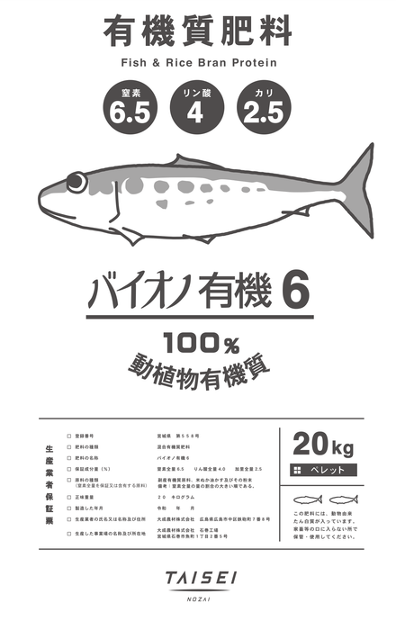 有機質肥料の開発・製造・販売を行う大成農材株式会社(代表:杉浦 朗、本社:広島県広島市)では、製造工程を見直すことで、従来品よりも価格を抑えた有機質肥料「バイオノ有機6(シックス)」を開発しました。6月1日より自社工場のある宮城県石巻市を中心に関東・東北地方で先行販売を開始します。
