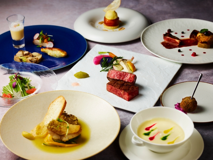 知られざる希少ブランド和牛「鳥取県産万葉牛」の炭火焼ステーキを中心としたコース料理を楽しめるリーベルのステーキレストラン。 この冬は、ブリやズワイ蟹、蕪など、旬の食材に加え、雲丹やフォアグラ、鳩などの贅沢な食材を使用したディナーコースをご提供いたします。大阪の銘菓 粟おこしをパン粉にした前菜から、フヌイユのソースをカプチーヌ風仕立てにした洋風茶碗蒸しまで、一皿ずつ異なるこだわりの詰まったお料理をご賞味ください。(写真は「NEW YORK ニューヨーク」 コース 1名様16,000円のイメージ)