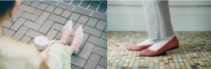 Oito(おいと)は女性の足や靴に関する悩みに寄り添い、従来靴とは異なる方法で一から開発された、糸シューズブランドです。履き心地が良いだけでなく、従来のレザーでは叶えられなかった「蒸れない」「洗える」といった機能を付加し、糸ならではの肌に触れる心地よさを追求しています。
