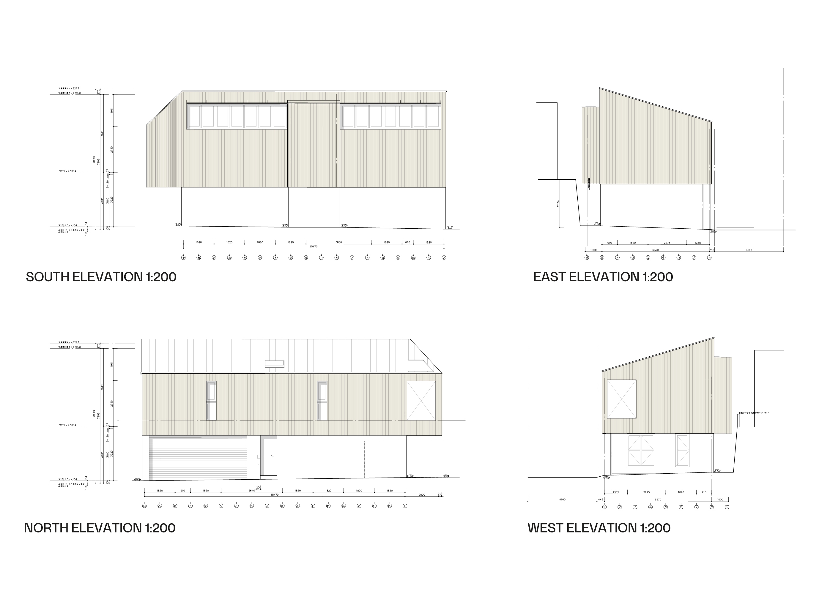 具体的には、崖条例の制約から1階を鉄筋コンクリート構造、2階を木造とする構造を選択しました。1階の南側崖側には条例により開口部が設けられない為、2階リビングスペースの上部に連続するトップライトを設け、南側の隣接する民家を避け冬の直射日光を導光する計画とし昼間の照明利用を抑え、明るい広々としてリビング空間が得られる様に計画しました。