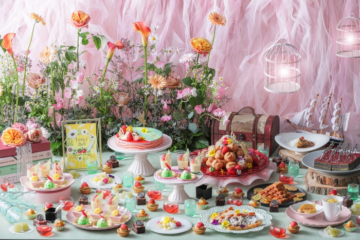 小説「ピーター・パンとウェンディ」から着想を得た本企画の舞台は “ストロベリーネバーランド”。ピーター・パンに恋するティンカー・ベルを、旬のいちごやピスタチオを使ったキュートでさわやかなスイーツの数々と空間で演出。ティンカー・ベルの魔法の粉や羽をあしらい、甘酸っぱい恋心をイメージし可愛らしく仕上げた“恋するティンカー・ベル~ラズベリーライムムース~”は、シェフパティシエおすすめの一品です。また、バニラビーンズが香るカスタードをたっぷりと入れたホテルメイドのシューをエディブルフラワーや蝶々のチョコレートを使い、メルヘンチックに仕立てた“いちご&シュー お花畑のクロカンブッシュ”や、“いちごとピスタチオのタルト”など、全16種類のスイーツが楽しめます。フードは、じっくり煮込んだ“インディアンカレー”や、“ファルファッレのクリームパスタ~妖精たち~”など、ボリューム感のあるメニューを食べ放題でご用意。会場内は、ファンタジックな世界が広がっており、フォトスポットも充実。物語の中にトリップしたようなひと時をお過ごしいただけます。