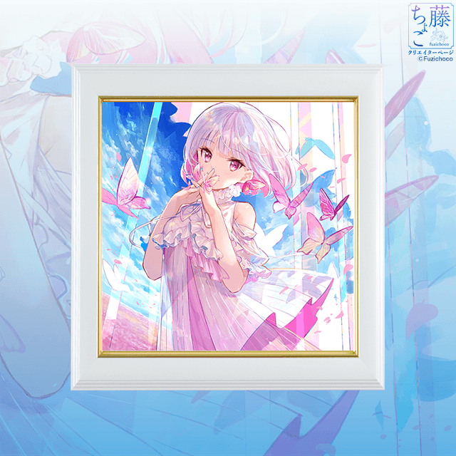 藤ちょこ先生が描いた美麗なイラスト「春色」に刺しゅうを施し、フレームに額装してお届けします。