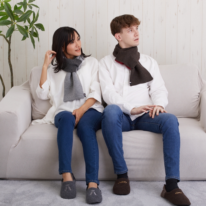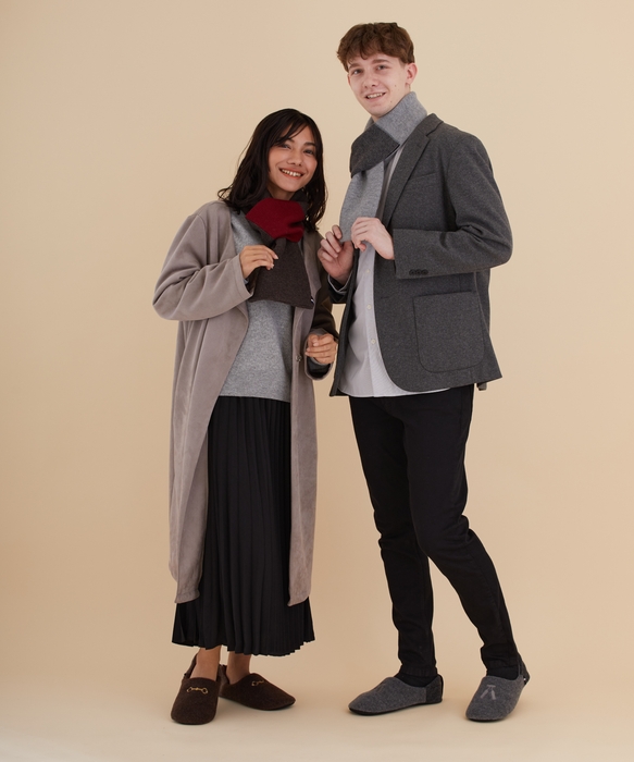 アクセントファッションを得意とするムーンバットから「ミラノリブ マフラー」、リーガルコーポレーションからフットウェアの経験を活かした「ルームシューズ」をローンチ。カラーコーディネートされた組み合わせと、ブランド名の「Nastro(ナストロ:イタリア語で「リボン」の意)」の通り、あしらったストライプのオリジナルリボンがアクセントとなり、日常にもたらす「上質な時間」を表現します。