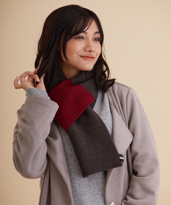 グレーにチャコール、ダークブラウンにワインと、アクセントカラーの効いたコンパクトにまとまる使いやすいマフラーです。片側が通しループ形状になっていて、誰でもすっきり簡単にキレイに巻ける仕様。上質なウール100%の艶感のある糸で軽量感を保ちつつふっくらと編み上げられている「ミラノリブ」と呼ばれる編立で、カジュアルな装いからジャケットやコートとの相性も抜群です。男女問わずお使いいただける、靴やコーディネートに合わせやすい落ち着いたカラーの組み合わせをお楽しみいただけます。ON・OFFを問わずに活躍してくれ、首元に上品な質感と暖かさを演出します。 (カラー:グレー、ダークブラウン サイズ:全長:約84.5㎝ 幅:約19㎝ ご家庭で手洗いできます) 製作 / ムーンバット