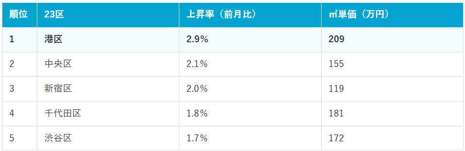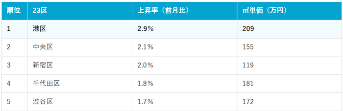 これは23区内で最も高い伸び率であり、港区の不動産市場の活況ぶりを物語っています。
