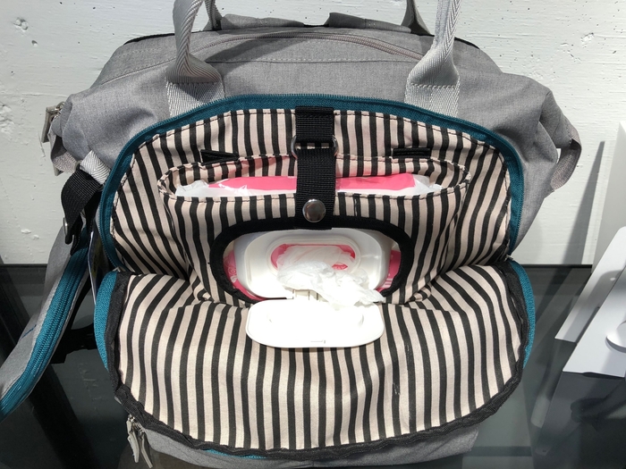 リュックのオムツの部屋には、おしり拭き専用のポケット付き。