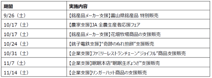 【当社で9月以降に取り組んだ応援・支援企画の一部内容】