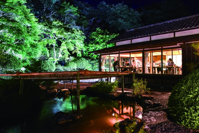 ライトアップされた日本庭園の離れにて期間限定でイチローズモルトを中心とした秩父地域のお酒を提供。