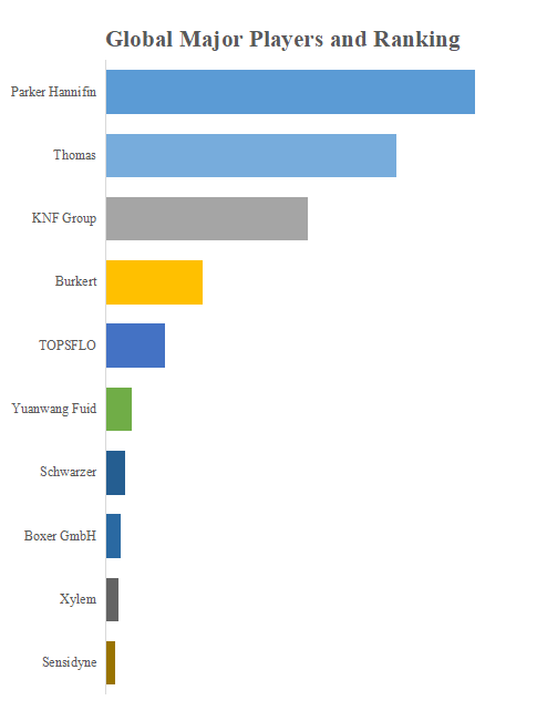 QYResearchのトップ企業研究センターによると、マイクロダイヤフラムポンプの世界的な主要製造業者には、Parker Hannifin、Thomas、KNF Group、Burkert、TOPSFLOなどが含まれている。2022年、世界のトップ3企業は売上の観点から約61.0%の市場シェアを持っていた。