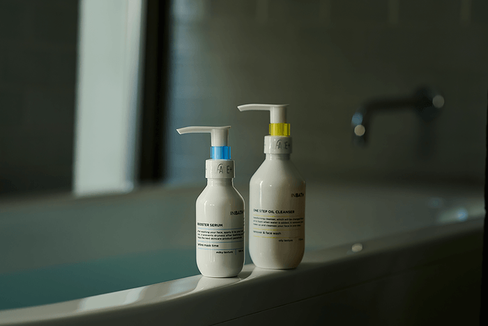 オイルが泡に変化する新感覚のワンステップクレンジングと、濡れた肌にもするする馴染むブースターセラムでお肌の土台作りを浴室内で完結できます。