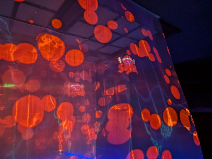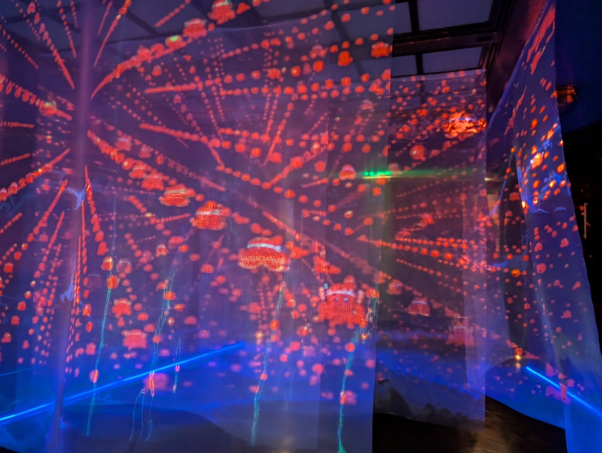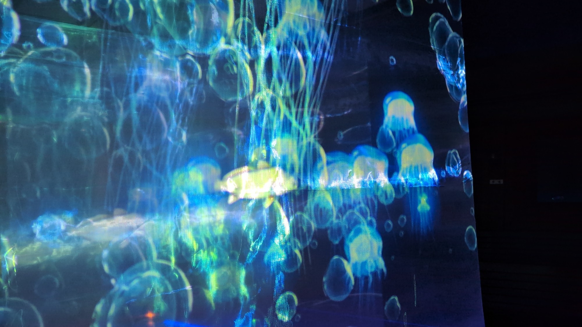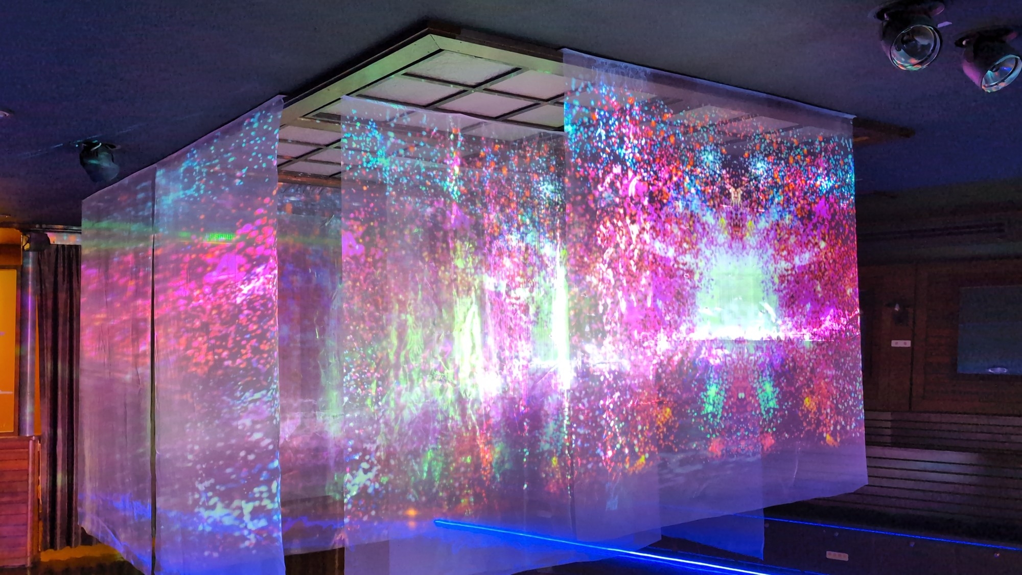 「海」か「宇宙」か?「マクロ」か「ミクロ」か?様々な色彩の光の波に満たされた不思議な空間