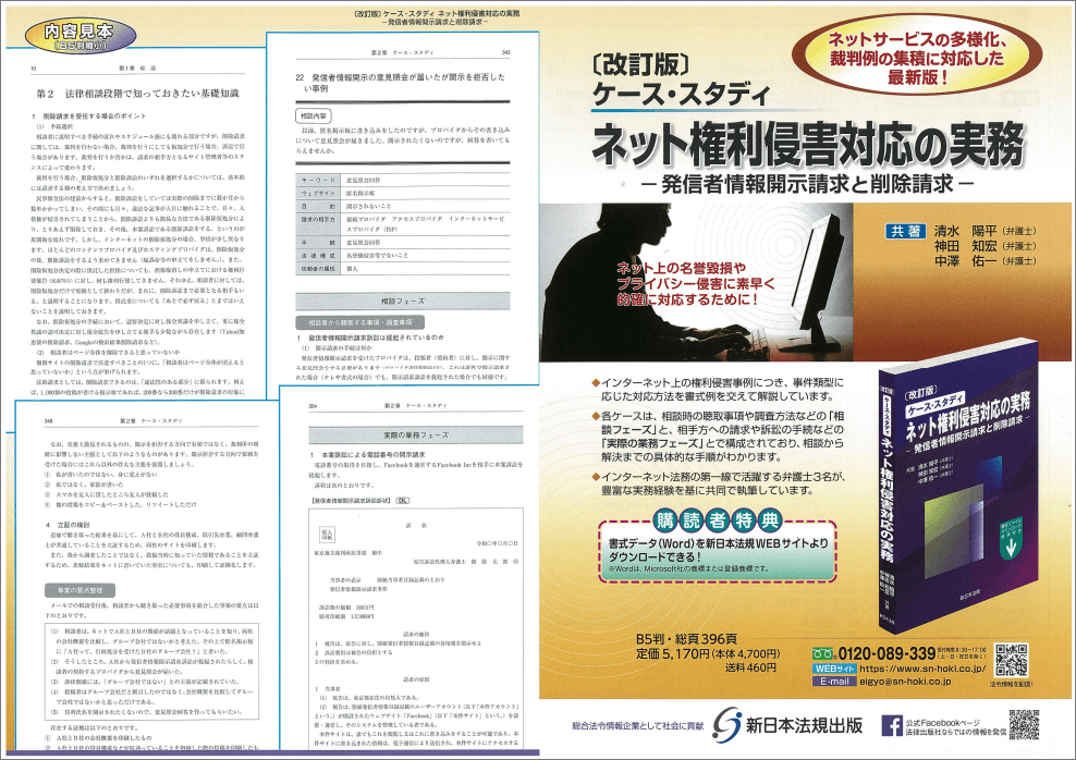 ご購読者専用 書式ダウンロード特典付!「〔改訂版〕ケース・スタディ ネット権利侵害対応の実務-発信者情報開示請求と削除請求-」好評につき少部数ながら再入荷いたしました!