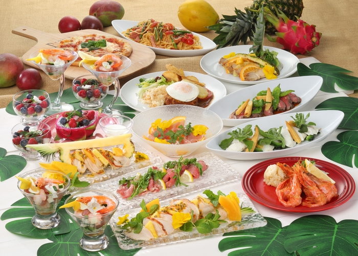 料理はトロピカルなフルーツと組み合わせたり、カクテルソースを合わせたりと、見た目やテイストにもさわやかな南国気分が味わえるようご用意しました。また、ハワイをイメージしたカクテル4種(別途料金)もお楽しみいただけます。