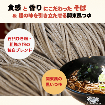 簡単調理でも、そばの“食感”と“香り”は損なわないという信念のもと、何度も試作を重ね、今回の麺が完成しました。できたてを冷凍することにより、その風味と食感を閉じ込めました。麺の味を引き立たせる関東風の濃い醤油系のつゆを個袋で準備しています。