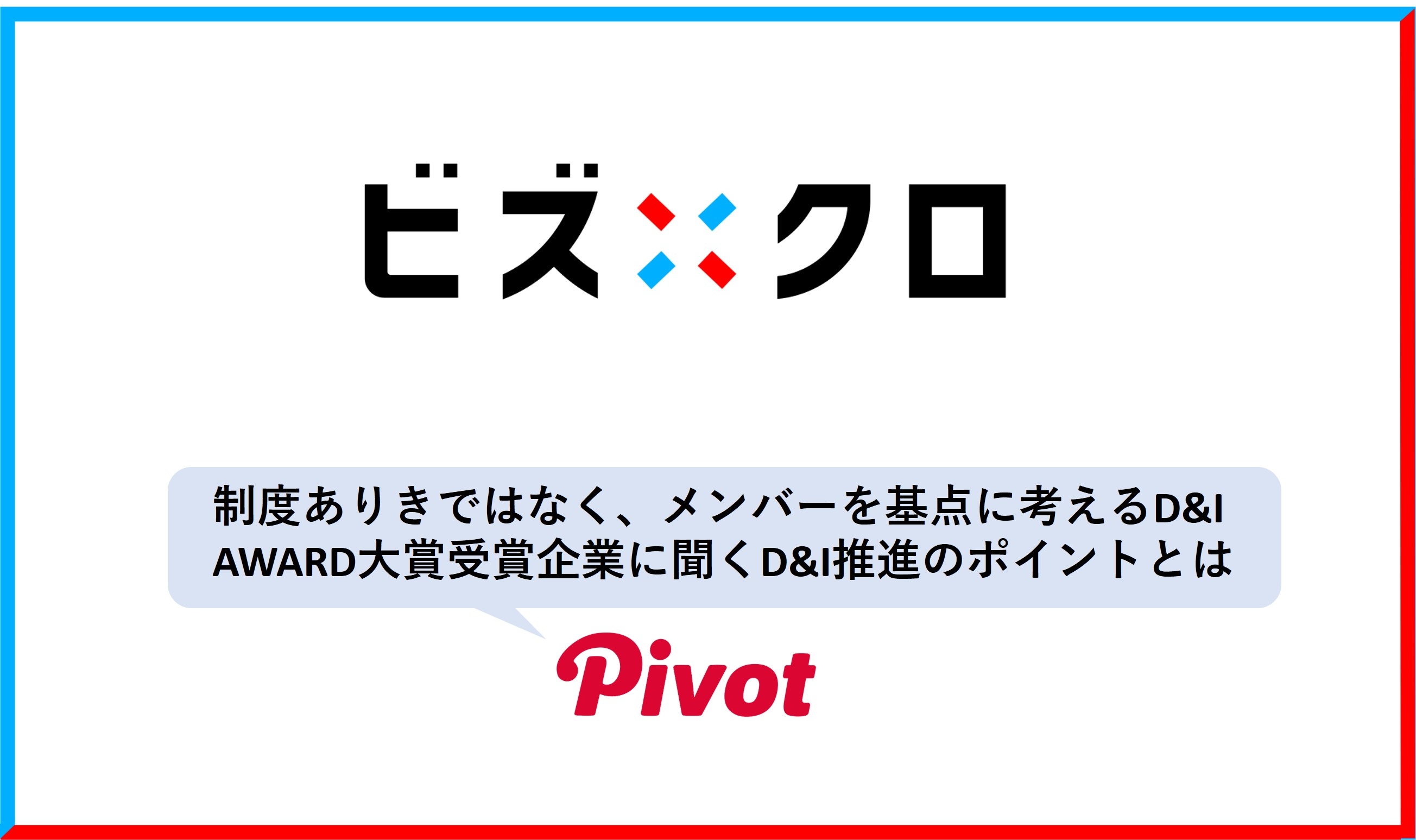 株式会社 PIVOT(URL: https://pivot.jp/ 所在地:東京都港区、代表取締役社⻑:宮嵜 泰成)は、株式会社kubellが運営する総合ビジネスメディア「ビズクロ」において、弊社が推進している取り組みの一つ『D&I』に関して取材、掲載をいただきました。