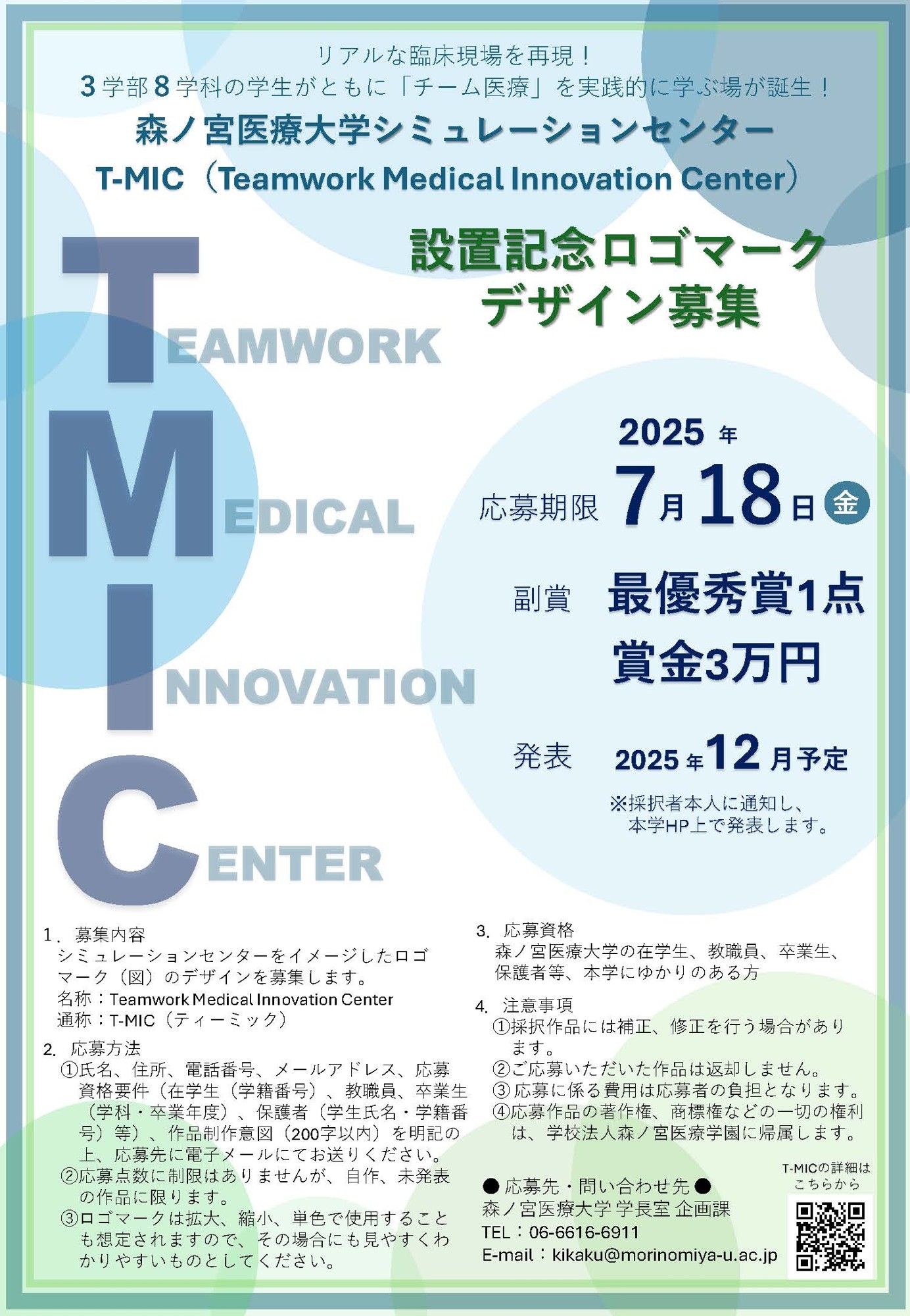 設置記念として、T-MICのロゴマークのデザインを募集します。応募方法等はチラシをご覧ください。