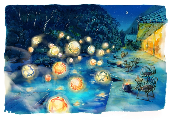 星のや京都は、2021年1月29日~3月31日の期間、施設内の水の庭で「星のや毬ごよみ」を開催します。約30個の色とりどりの手毬の中に灯りを仕込み、水の庭に設置します。手毬のやわらかな灯りが水に浮かぶ幻想的な風景を眺めて夜の時間を楽しむ空間演出です。